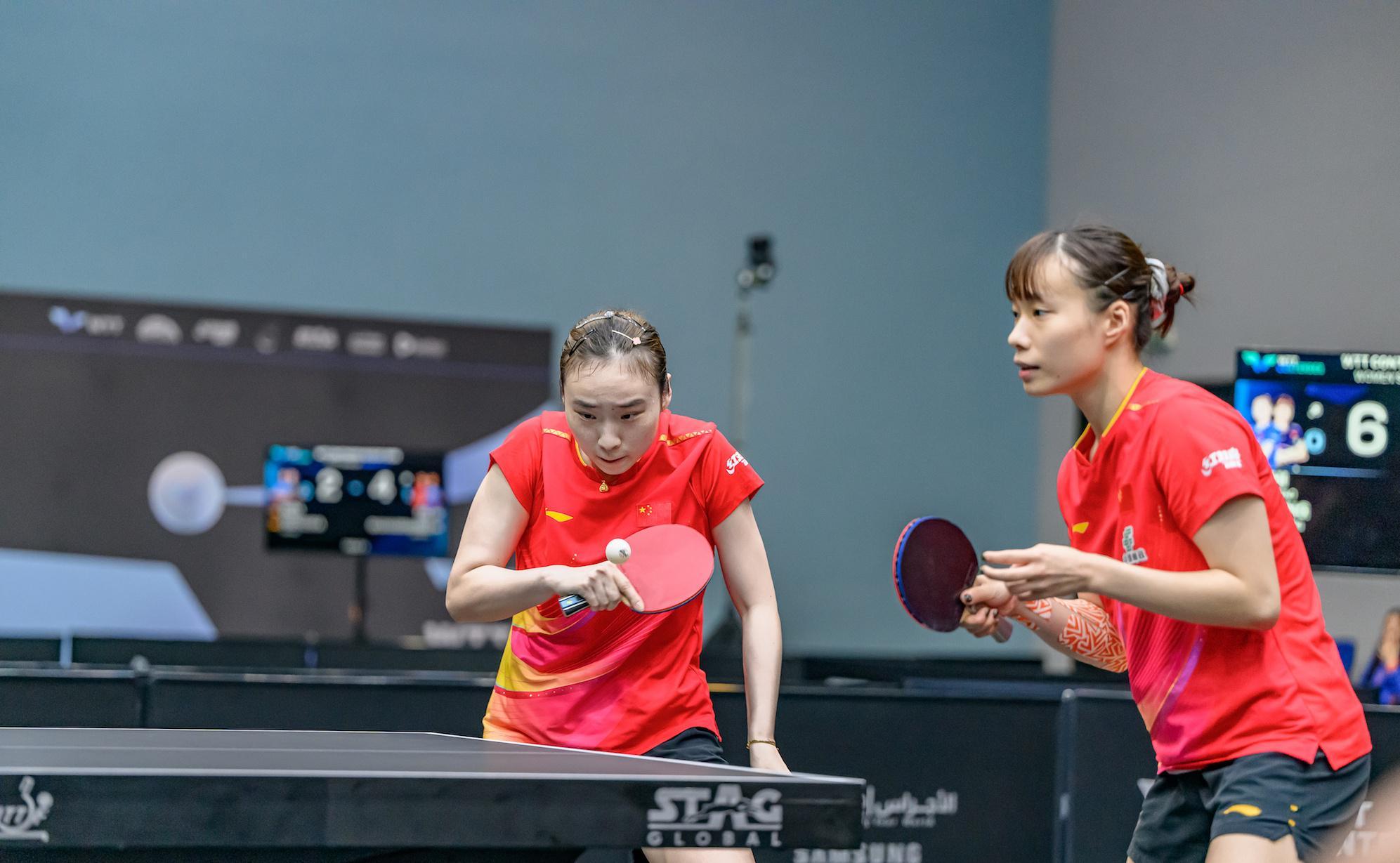 石洵瑶和王晓彤搭档女双,在1/4决赛3比0击败了戈什/科特查,比分为17-15,11-9,11-7。而在混双比赛,黄友政/石洵瑶在半决赛3比0击败了罗伯勒斯/肖瑶茜,比分为12-10,11-9,11-3。